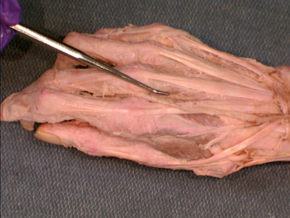 In the case of index and ring fingers they are inserted into the side of the finger away from the middle finger. In the case of the middle finger itself a dorsal interosseous is present on each side.