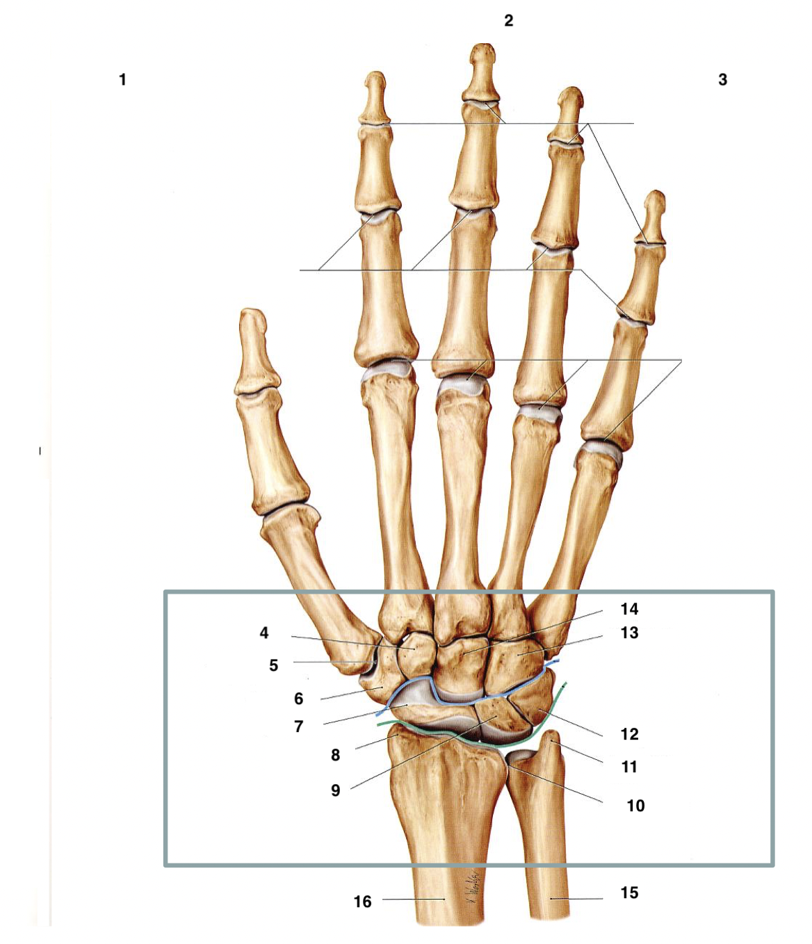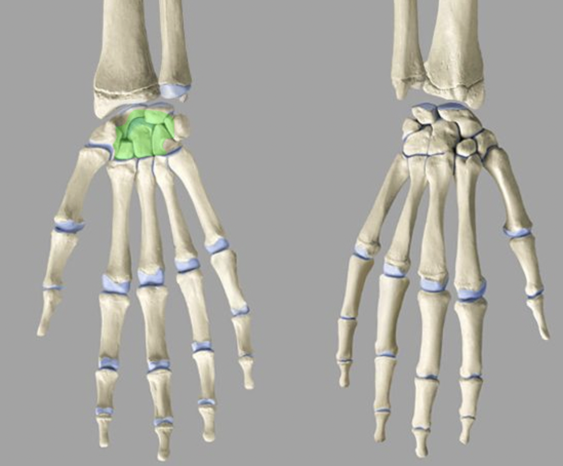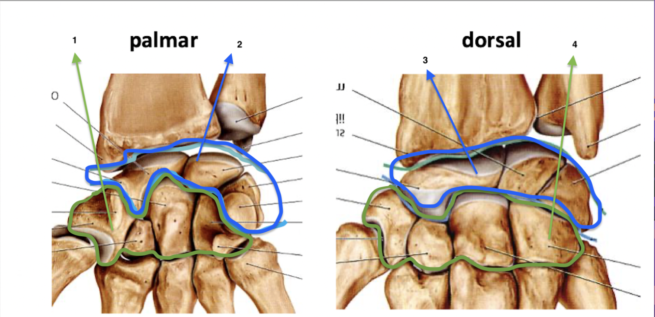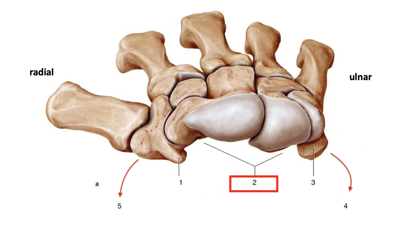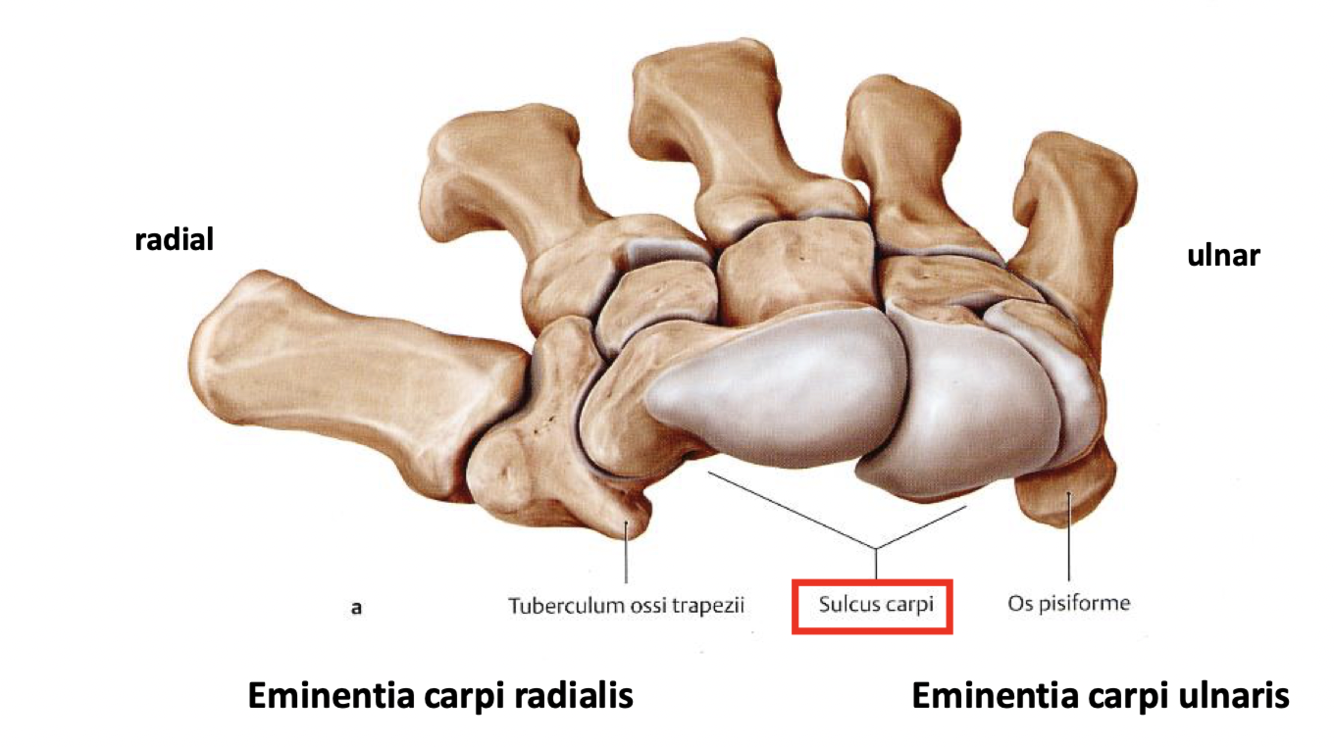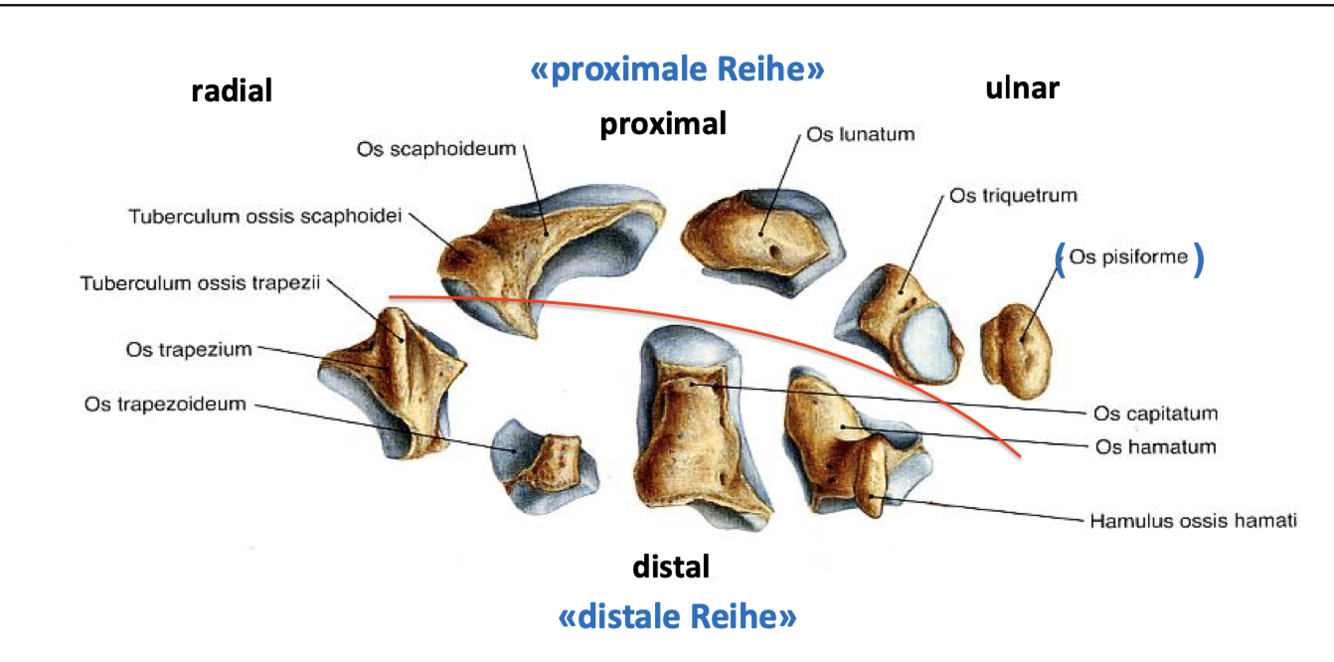 - Beim Durchtritt der Sehnen durch den Canalis carpi liegen diejenige für den III. und IV. Finger palmar, die für den II. und V. Finger dorsal.