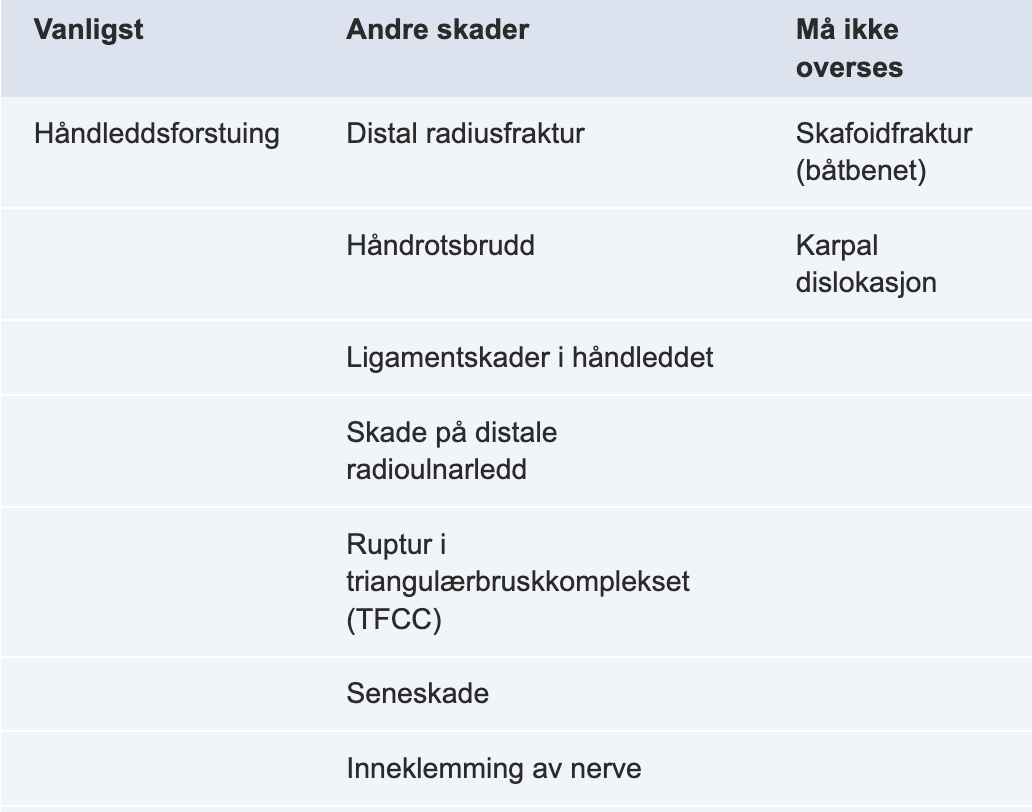 Hvilke spr. er akt. når det gjelder utvikling og forløp av hånd/fingerskade?