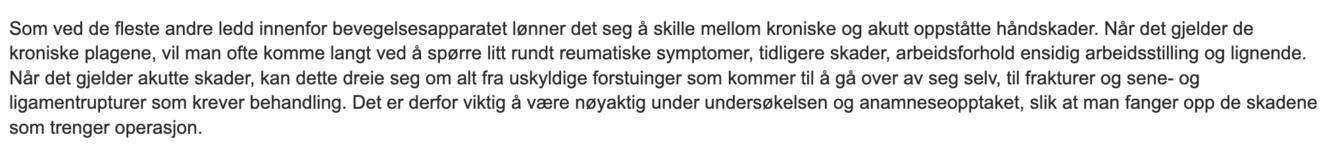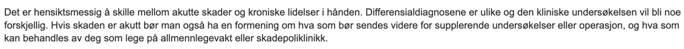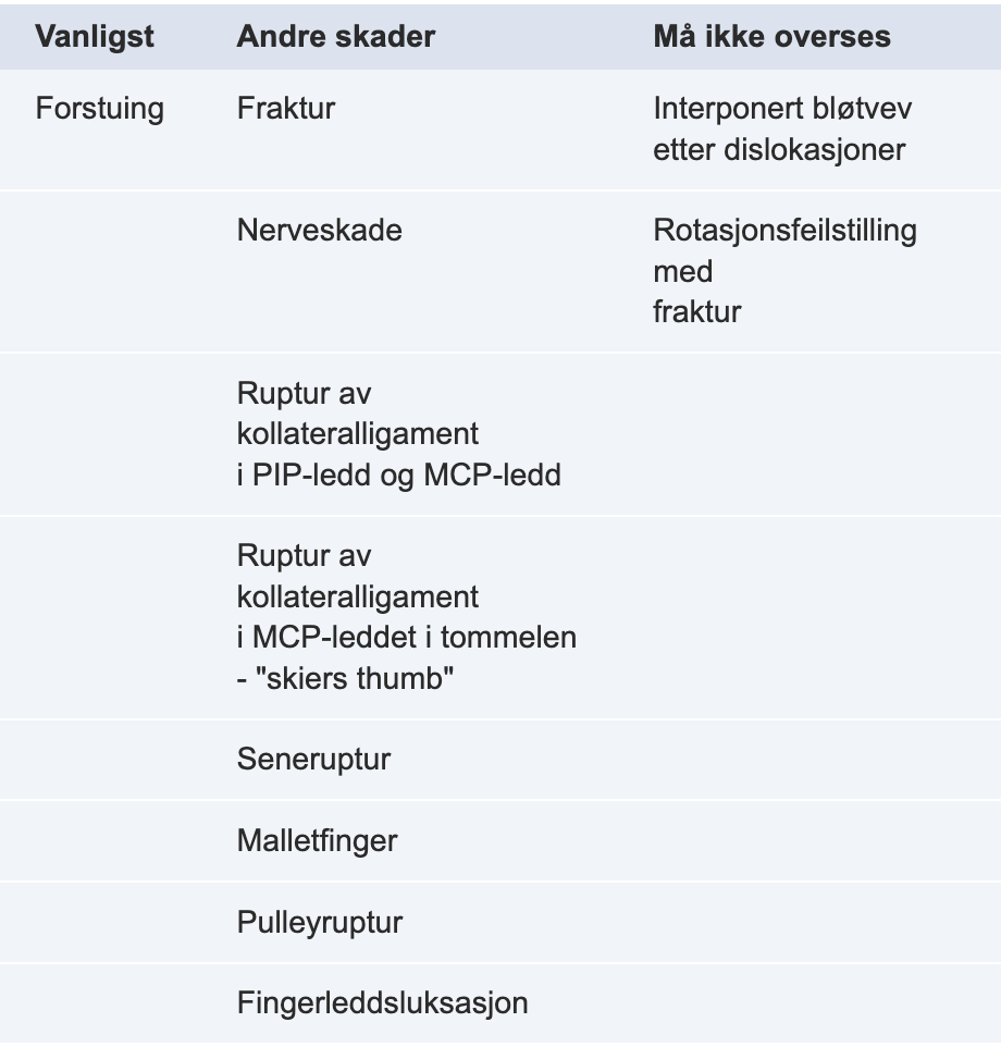Hva er de viktigste punktene å få frem ved aktuelt ved hånd/fingerskade?