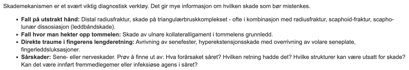 Hvorfor er skademekanismen et så viktig diagnostisk verktøy ved hånd/fingerskade?