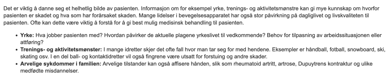Hvorfor er det viktig å kartlegge tidl. sykdommer/skader ved hånd/fingerproblematikk?