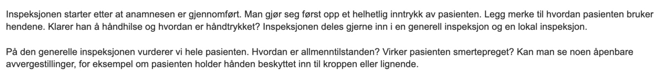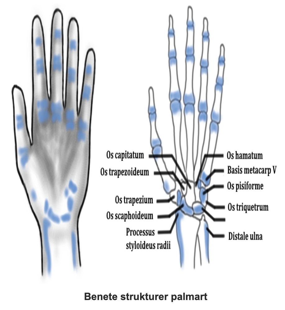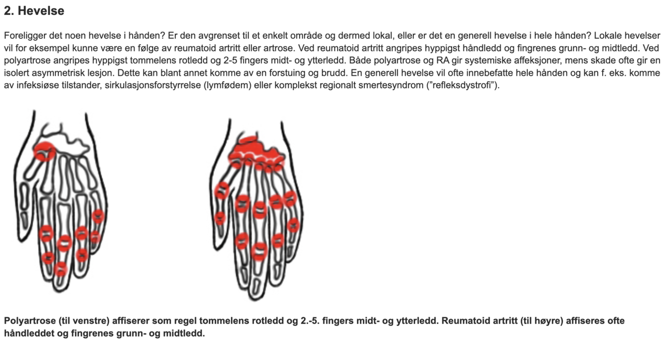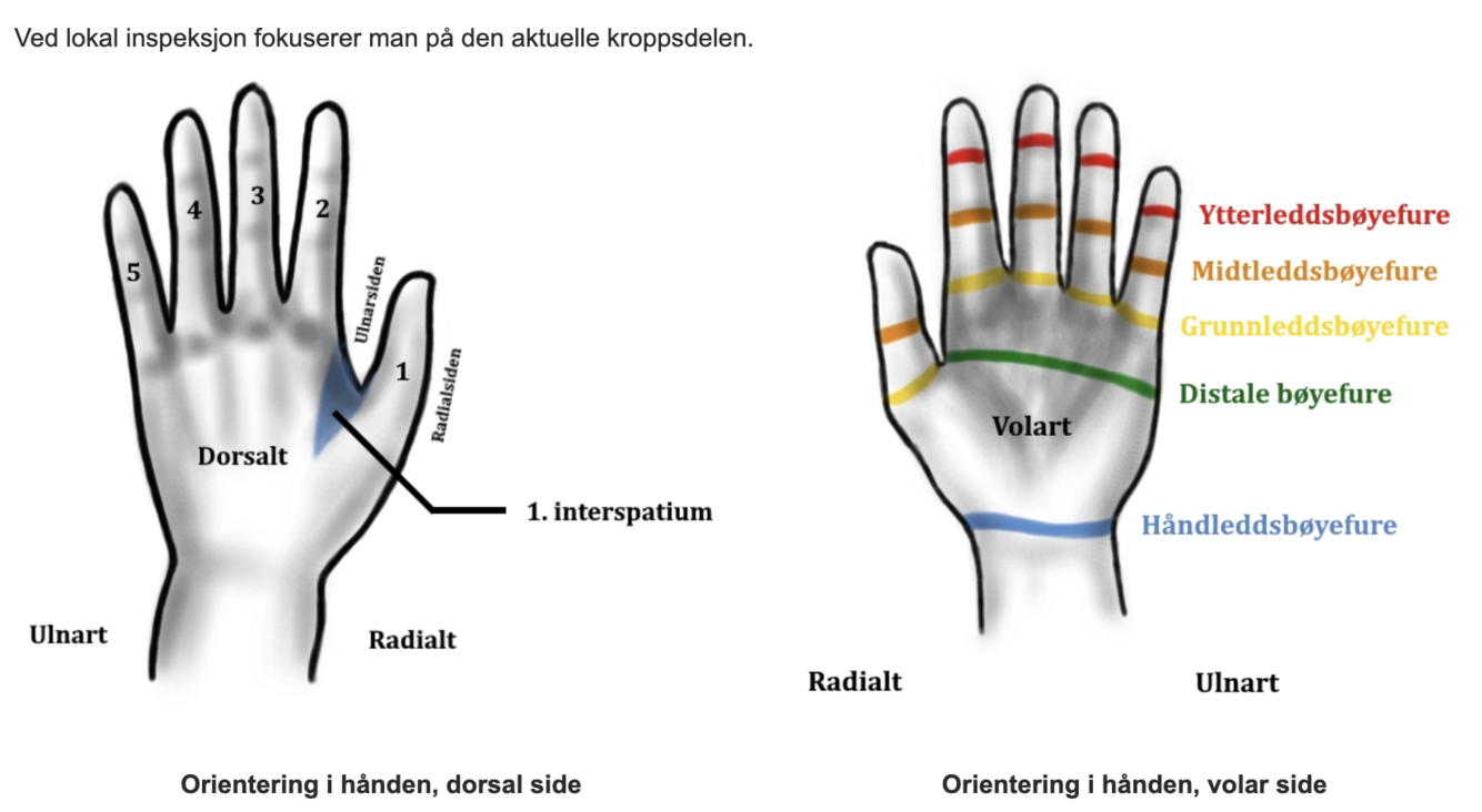 Hva bør man bemerke seg ved lokal inspeksjon av hånden?