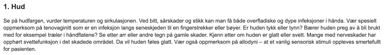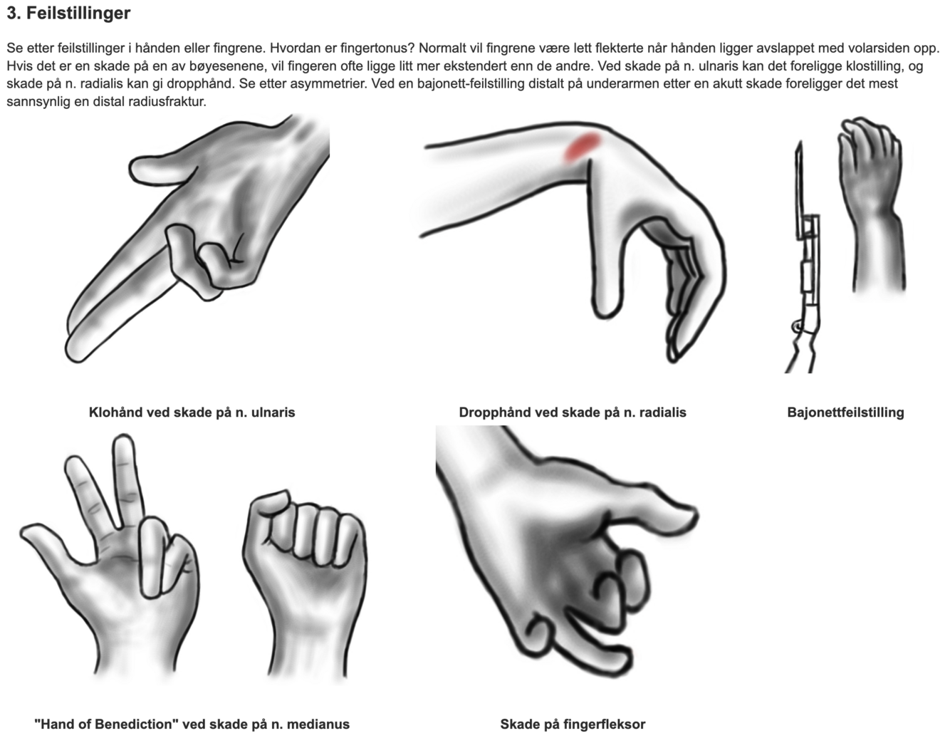 Hva ser man etter ved punkt 3 ved inspeksjon av hånden?