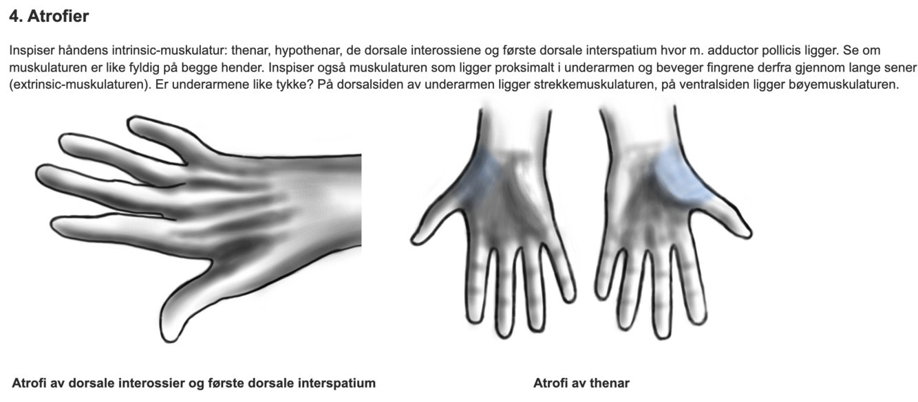 Hva ser man etter ved punkt 2 av inspeksjonen av hånden?