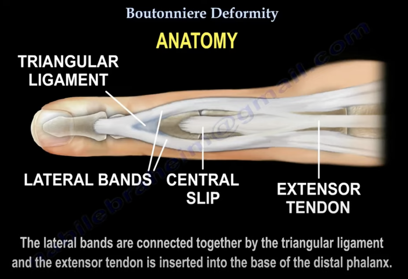 When you have a central slip injury. When you extend dip, the lumbricals pulls causing PIP pops through the defect. The trinagular ligament that holds lateral bands tight loosens overtime allowing for lateral band volar subluxation