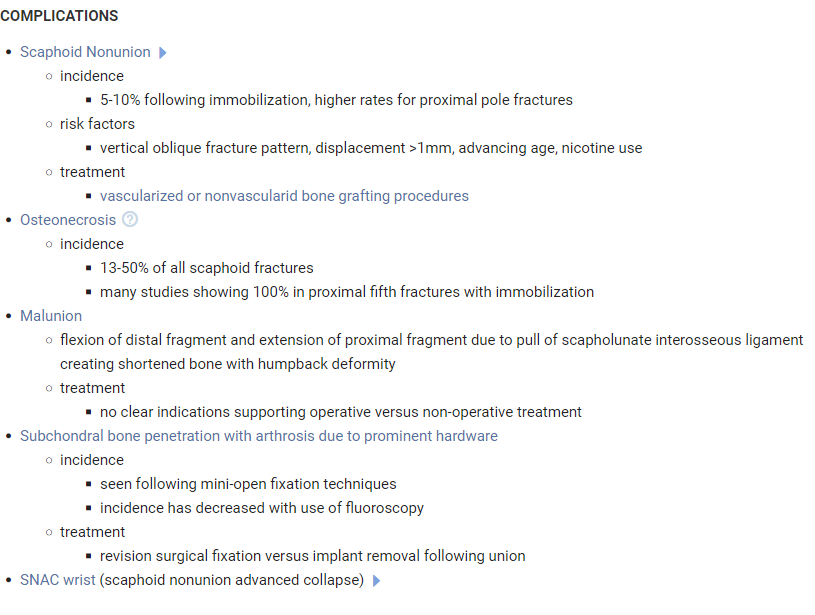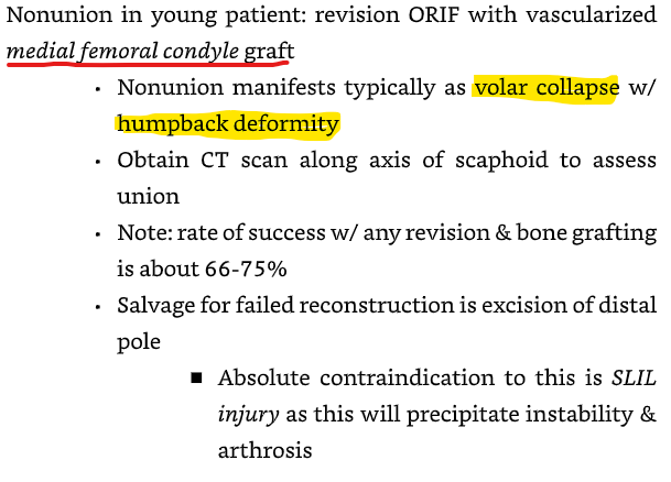 Dorsal: best for proximal pole fxs, higher risk of unrecongnized screw penetration of subchondral bone.