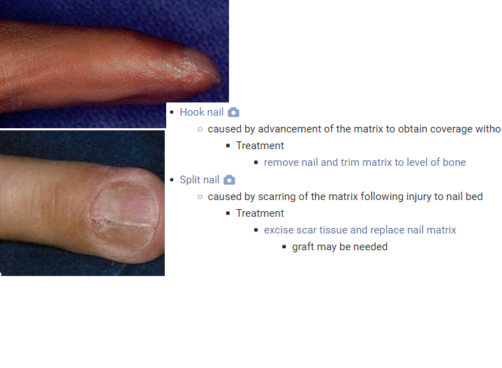 complications: MC flexion contracture, from non-op or delayed secondarily intrinsic tightness develops.