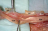The patient has a neglected PIP joint fracture-dislocation with comminution involving more than 40% of the volar articular surface of the middle phalanx. Volar plate arthroplasty has been advocated for the treatment of acute unstable and chronic dorsal fracture-dislocations. The volar plate is incised laterally and released from the collateral ligaments. The volar fragments of the middle phalanx are removed and a trough is created for advancement of the volar plate, which is secured with sutures secured on the dorsum of the middle phalanx beneath the extensor mechanism.