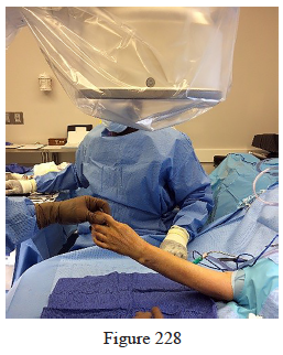 228. While attempting to recreate the inclination of the distal radius during volar fixation of an intra-articular sagittal split fracture, use of intraoperative fluoroscopic imaging in the position shown in Figure 228 would be helpful in showing