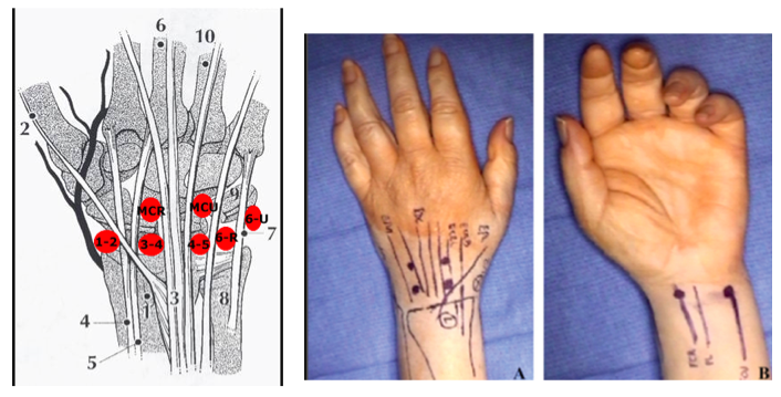 What are the common wrist extensor tendons that get injured during wrist athroscopy
