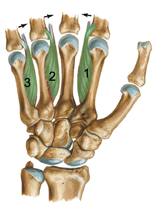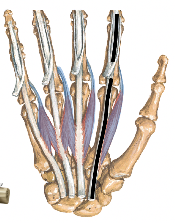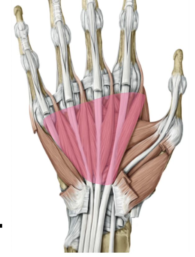 The tendons of the hands fan out to form:
