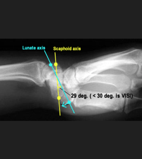 When the Lunotriquetral ligament is disrupted the scaphoid’s influence on lunate position is unchecked and the lunate gradually flexes with the scaphoid.