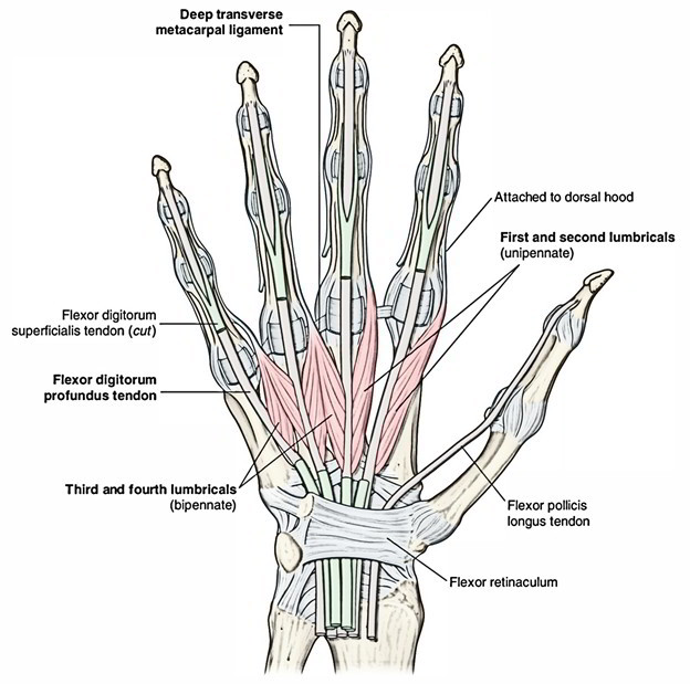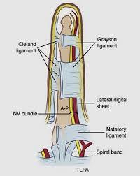 I: distal to FDS inertion II: Flexor retinaculum. No man’s land. avoid A2 and A4. III: Palm. IV: Carpal tunnel. Release and repair TCL during repair V: Wrist and forearm. Thumb I: Distal to FPL insertion Thumb II: Thumb flexor retinaculum. Preserve either A1 or oblique pulley Thumb III: Thenar eminence. Do not operate in this zone due to recurrent motor branch of median n