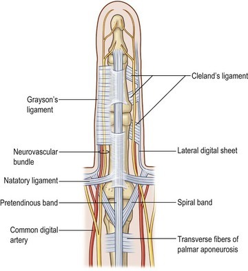 Volar to neurovascular bundle, stabilizes skill in NV bundle.