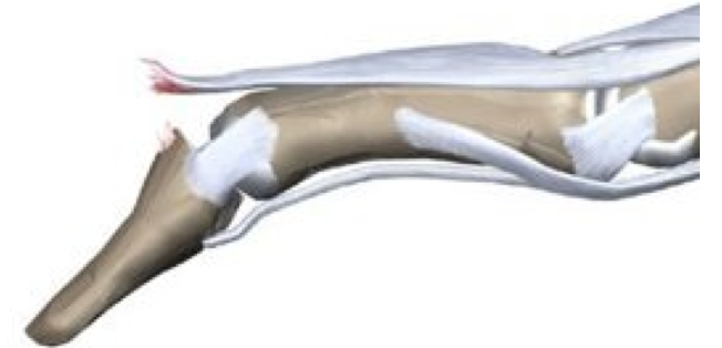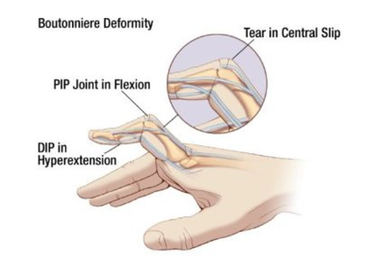 Är extensorseneskada som kännetecknas av PiP-ledflextion och en dip-ledextersion.
