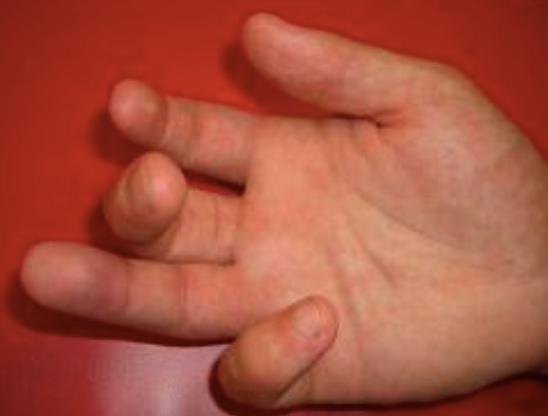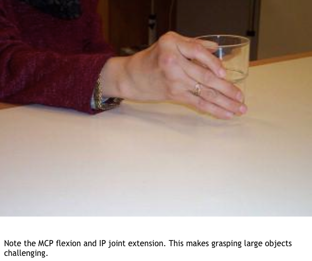 1) With the MCPJ in extension the intrinsics are put on a stretch. Try to flex the PIPJ with MCPJ in extension. If it doesn’t flex = tight intrinsics or joint capsule contracture.