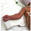 The infant has the classic manifestations of an upper trunk (C5-6), or Erb’s, palsy (weak or absent elbow flexion, shoulder abduction and external rotation, relatively preserved elbow extension and distal wrist/hand flexion). The “waiter’s tip” posture of the affected extremity indicates relative sparing of lower root (C8-T1) function. Isolated injury to the C7 root is uncommon and would primarily affect radial nerve innervated muscles such as the wrist and finger extensors, and forearm pronation. Injury to the posterior cord also effects radial nerve innervated muscles and would not alter biceps or deltoid function as observed in this child. Lateral cord damage would result in weak or absent biceps and pectoral function, but would not diminish deltoid or periscapular muscle activity.