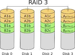 Striped set with dedicated parity disk Byte-level striping Minimum 3 drives