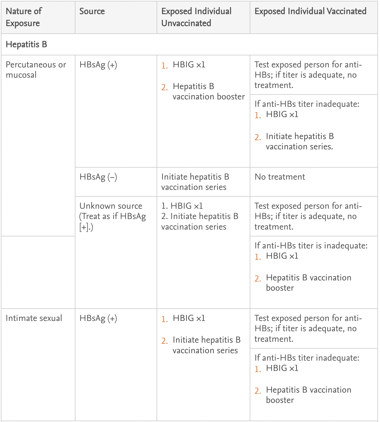 - ISG 0.2mL/kg IM to food-borne exposures within 2 weeks of exposure