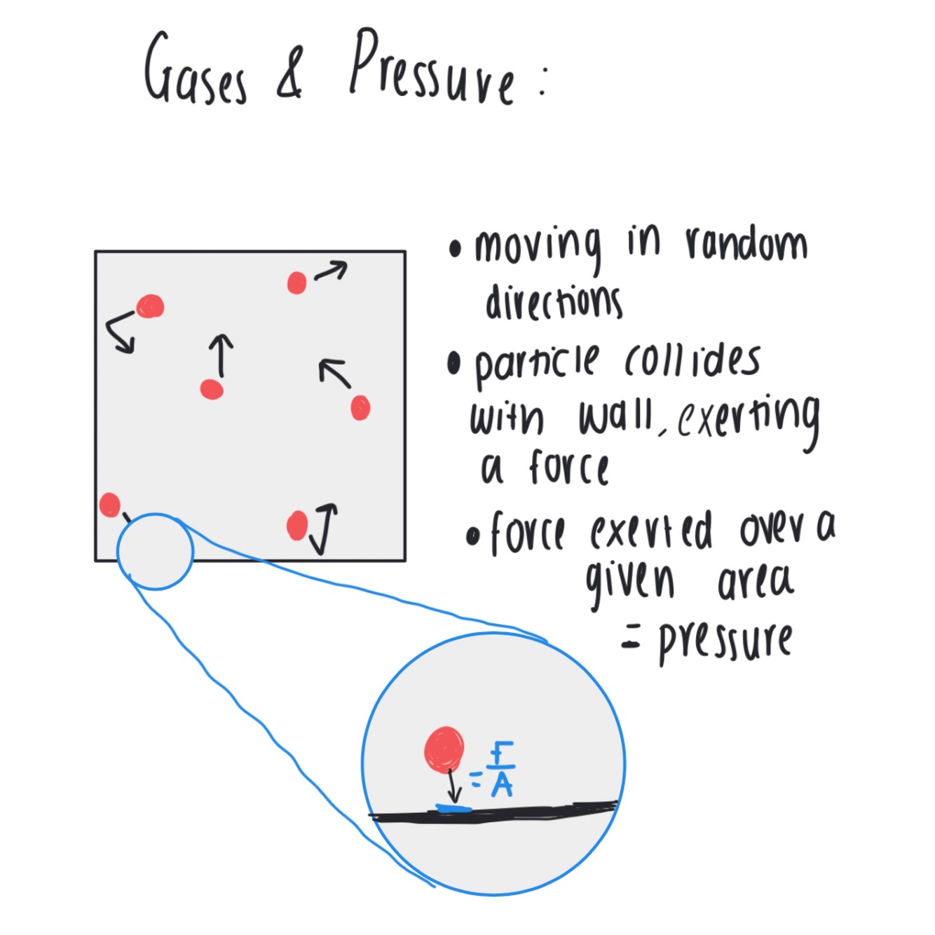 Collision with the walls of the container exerts a force- a net force on the inside of the container (surface) determines the pressure