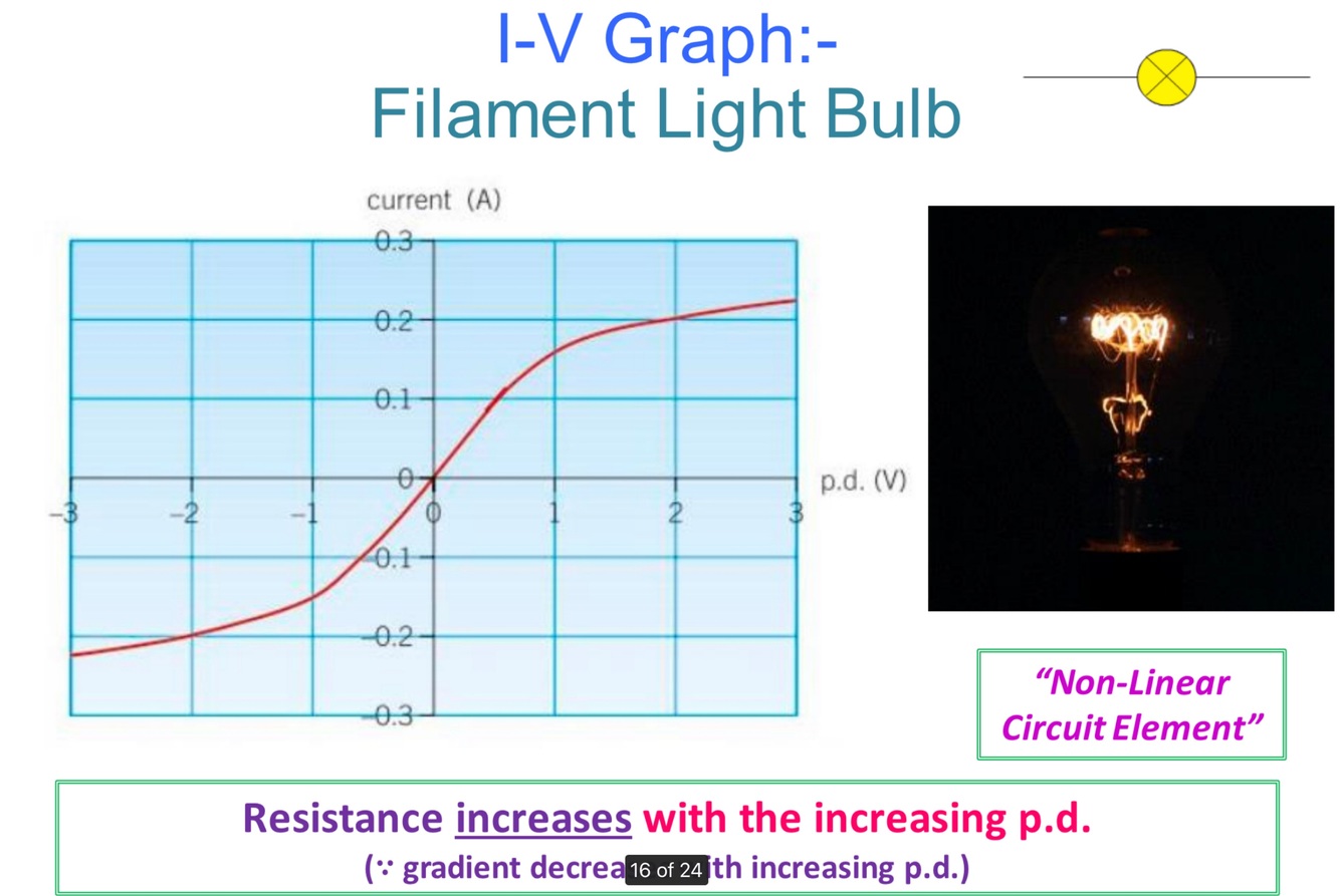 🔺The resistance increases with p.d