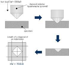 A small pyramid is forced into a test piece under specified load conditions.