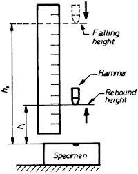 The tube is placed over an item and the striker is dropped, the height the striker rebounds from the item is the measure of the hardness.