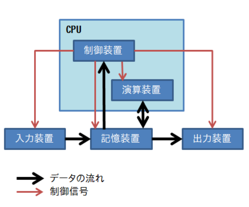 記憶装置内から演算装置にデータを移動したり、プログラ