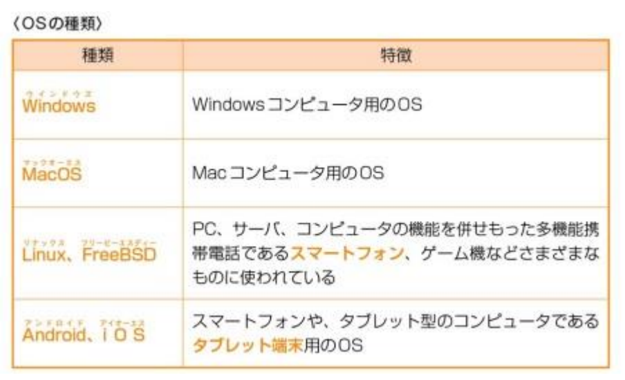 OS には次のようなものがある(Windows11, _____, _____, ______, _____, _____)。