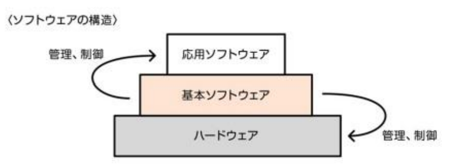 基本ソフトウェアはハードウェアと応用ソフトウェアの間に位置し、それぞれを管理・制限するとても重要なソフトウェアです。