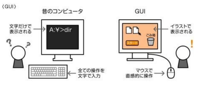 以前のコンピュータはすべての機能を文字で表示していたため、操作する際には専門知識が必要でした。しかしGUI は文字ではなくイラストで表示するので、知識がない人でも直感的にコンピュータを操作することができます。