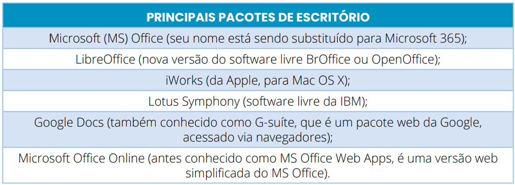 PRINCIPAIS PACOTES DE ESCRITÓRIO