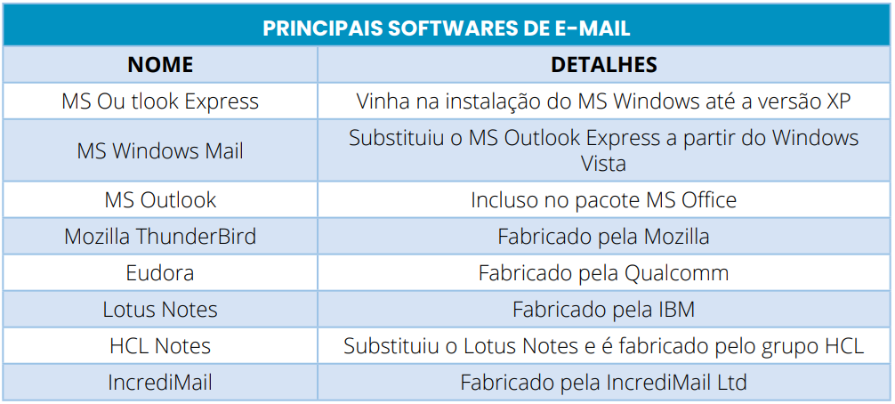 PRINCIPAIS SOFTWARES DE E-MAIL