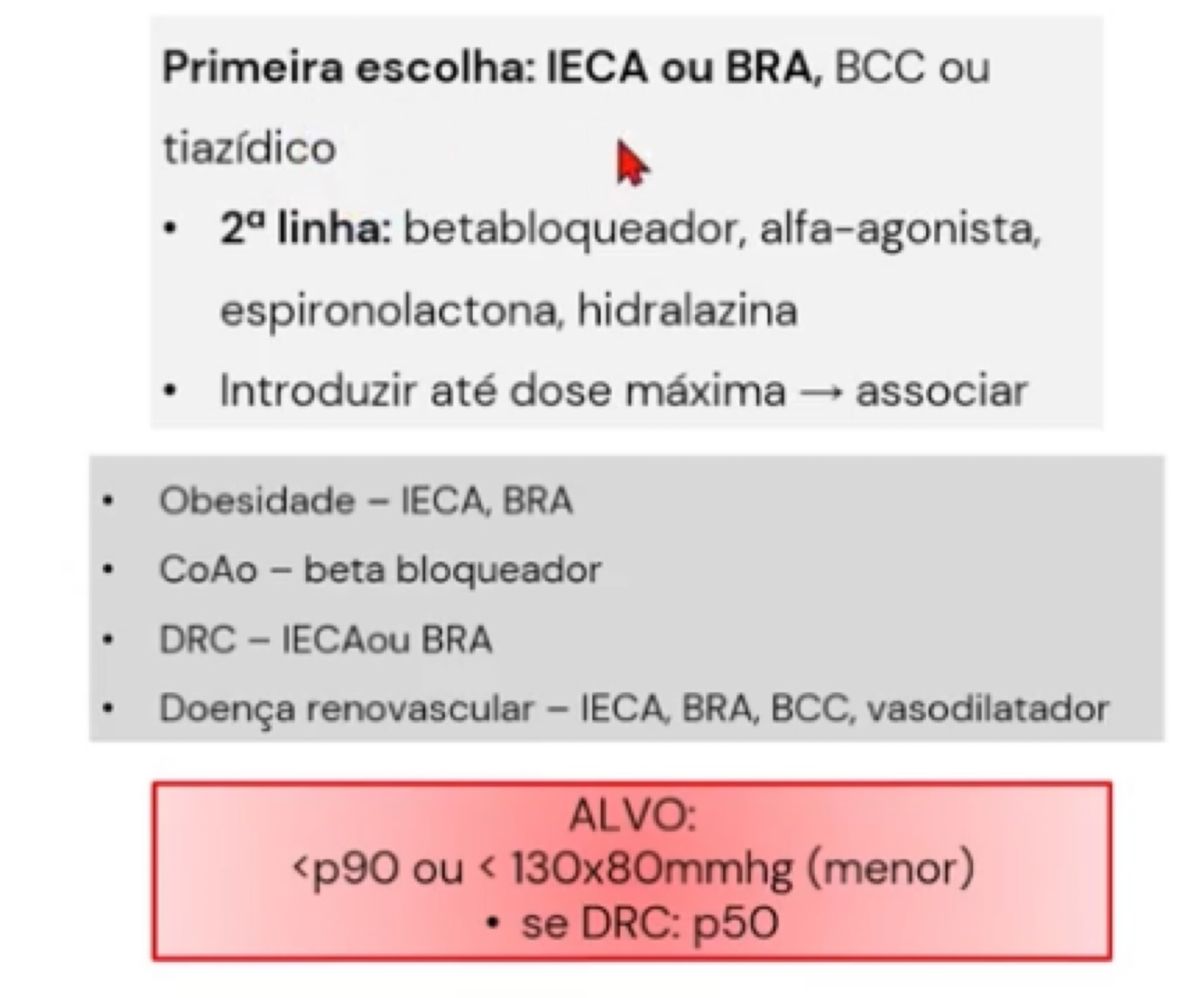 Qual Tto medicamentoso da HAS e alvo terapêutico?