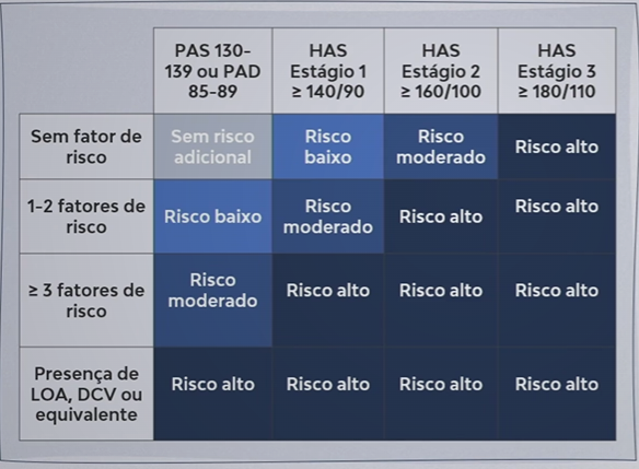 Paciente em HAS Estágio 1 (PA ≥ 140x90) sem fator de risco, com 1-2 fatores de risco, e 3-4, é