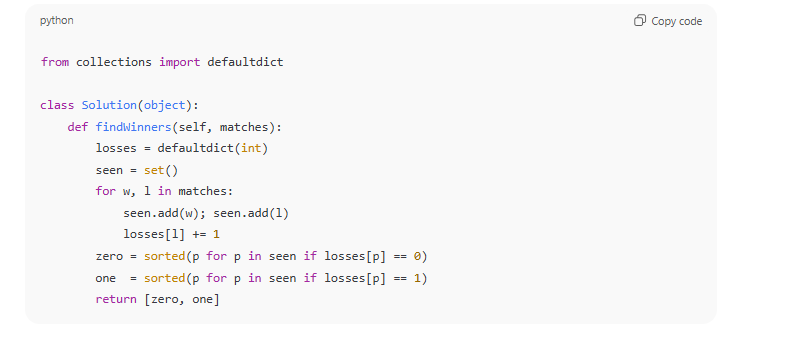 You are given an integer array matches where matches[i] = [winneri, loseri] indicates that the player winneri defeated player loseri in a match.
