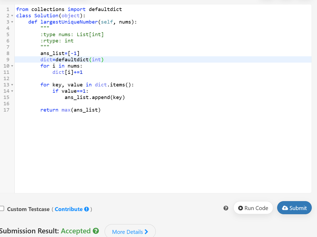 Given an integer array nums, return the largest integer that only occurs once. If no integer occurs once, return -1.