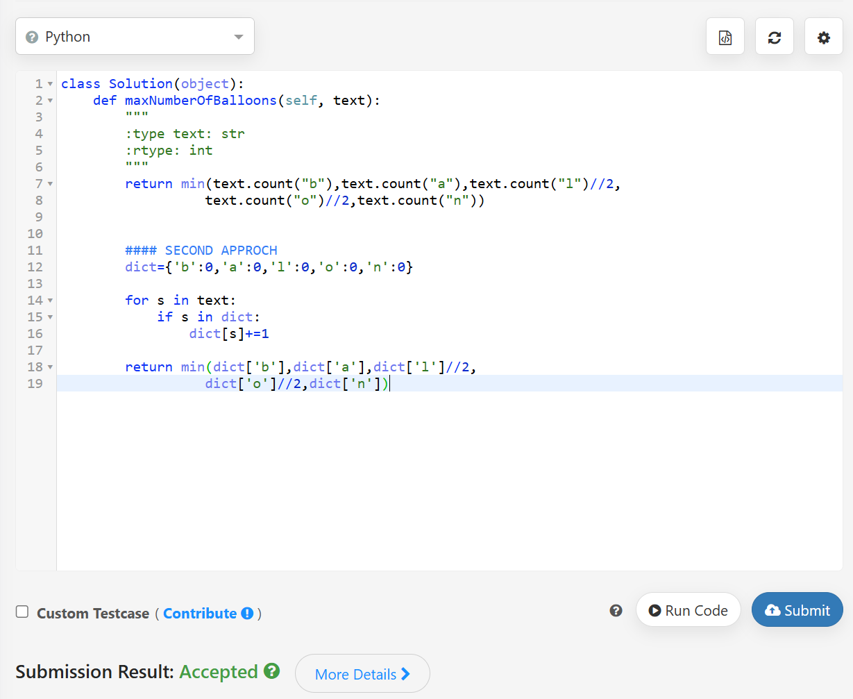 Given a string text, you want to use the characters of text to form as many instances of the word “balloon” as possible.