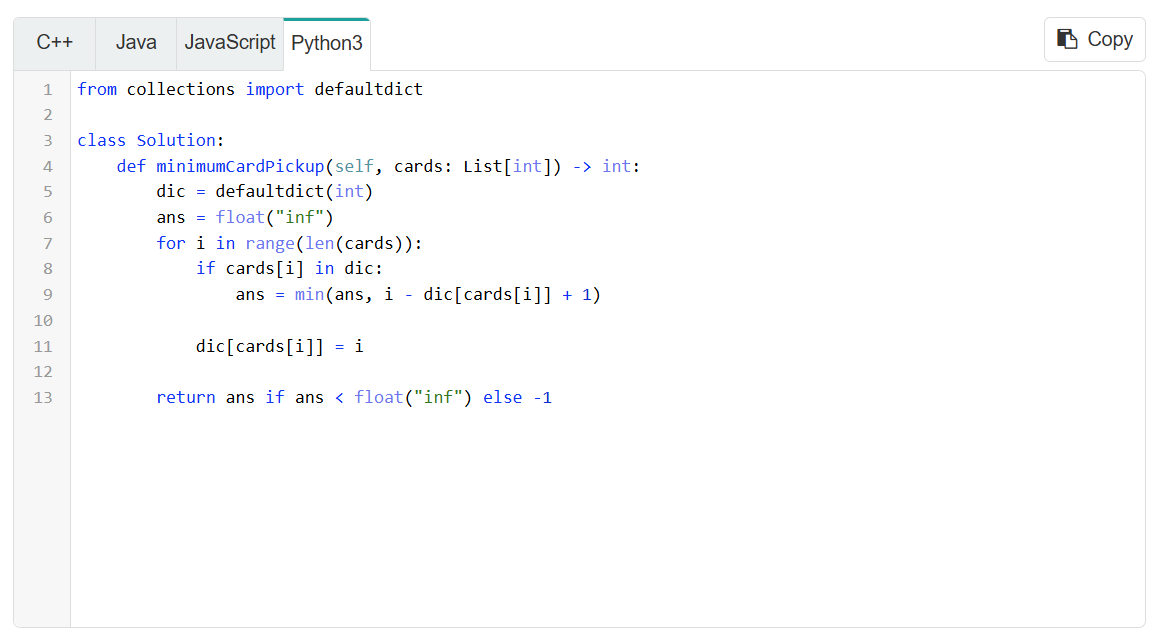 Example 2: 2260. Minimum Consecutive Cards to Pick Up