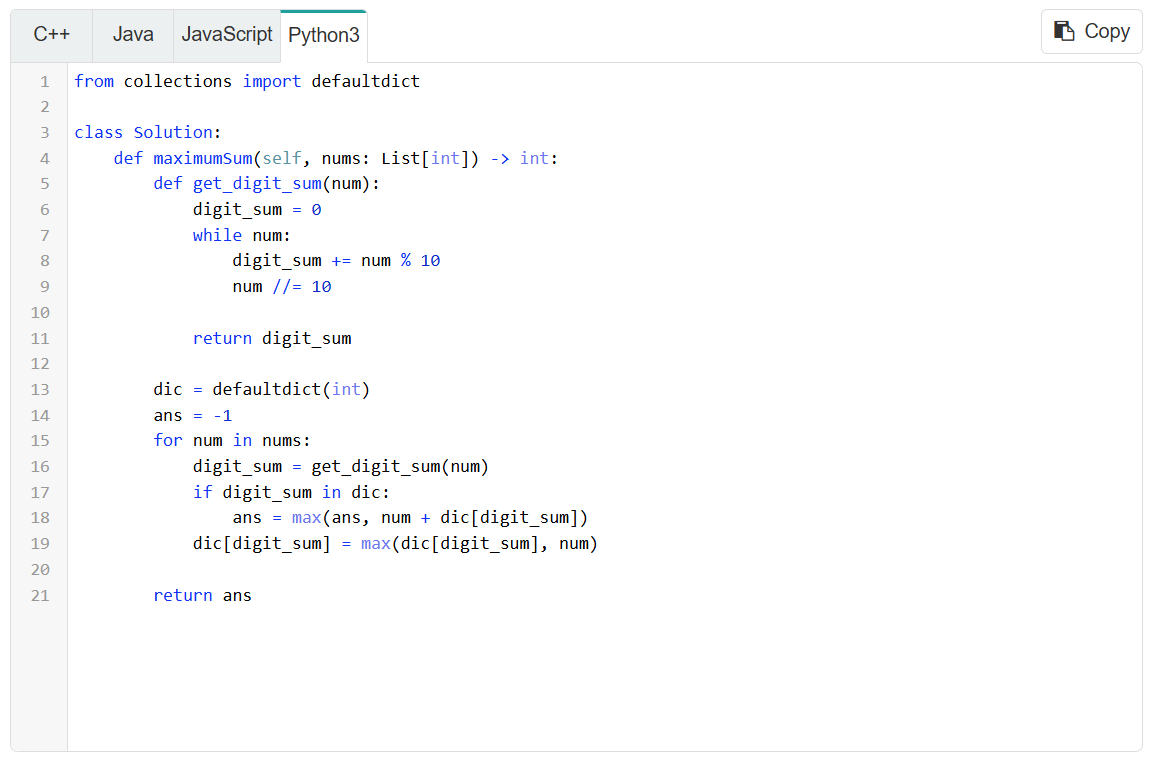 Example 3: 2342. Max Sum of a Pair With Equal Sum of Digits