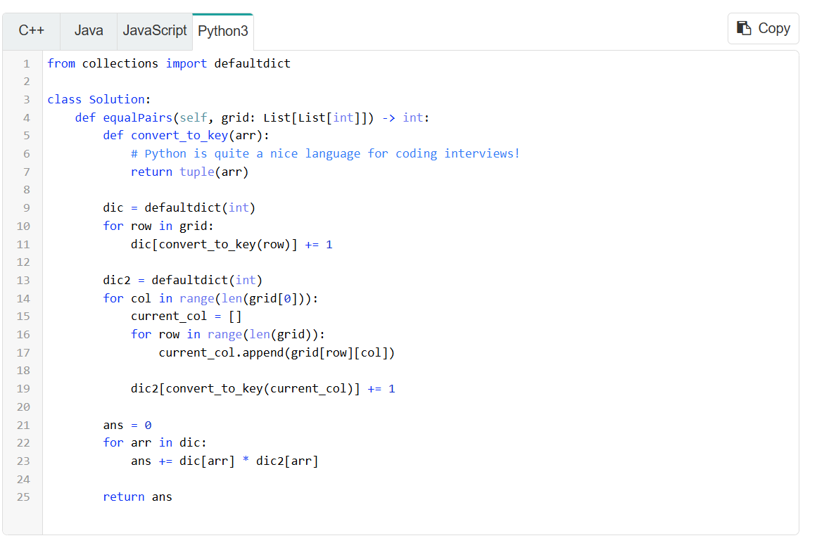 Example 4: 2352. Equal Row and Column Pairs