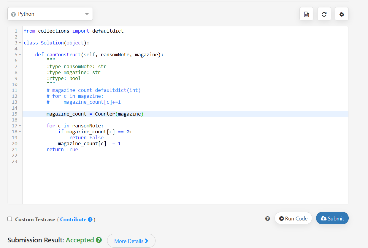 Given two strings ransomNote and magazine, return true if ransomNote can be constructed by using the letters from magazine and false otherwise.