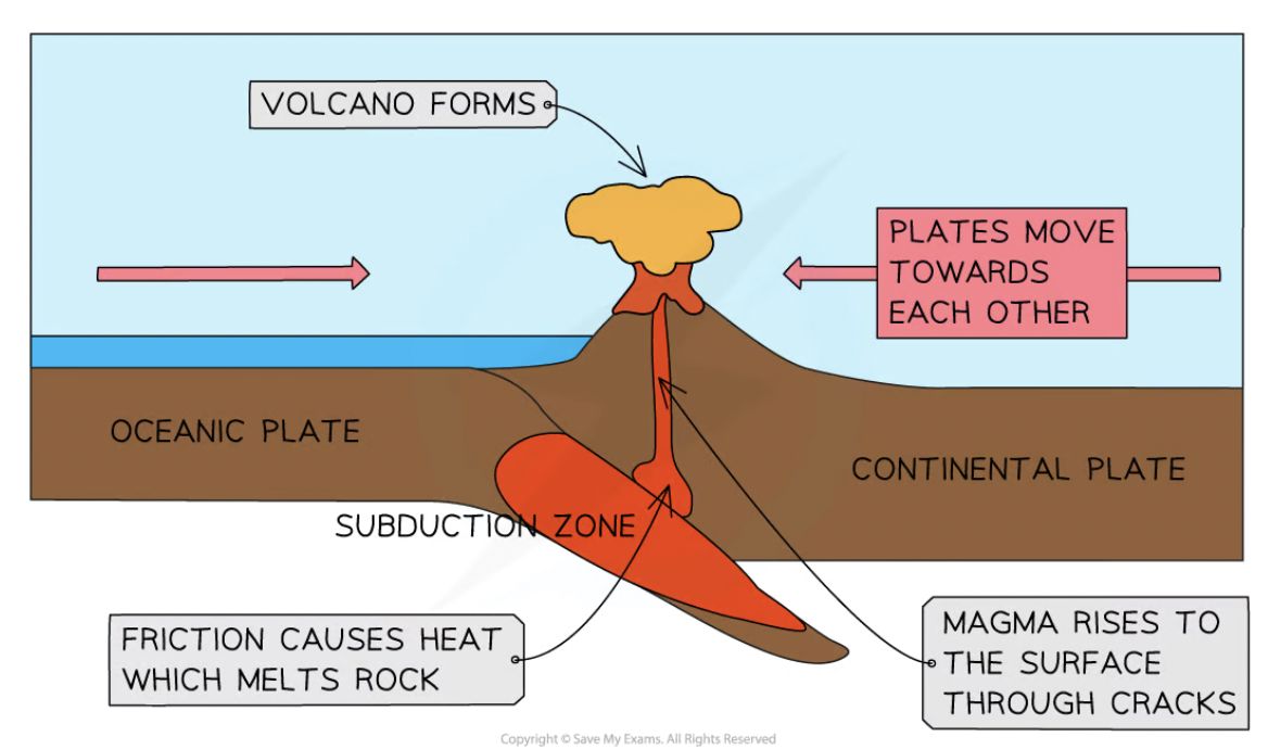 what happens when an oceanic plate meets continental plate? (destructive plate boundary)