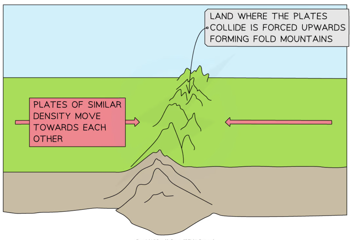 - This forms fold mountains
