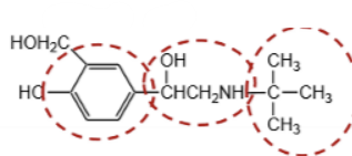 Alcohol phenyl ring, salicylic alcohol, and T-butyl. (optimal Beta-2 selectivity)
