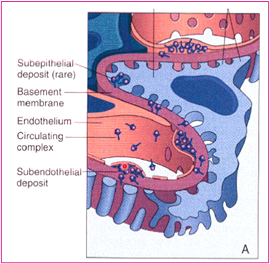 - Kleine immuuncomplexen bevinden zich meer bij de podocyten en grote immuuncomplexen bevinden zich meer bij de endotheelcel.