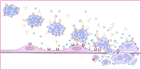 - Als de immuuncomplexen meer aan de kant van het bloed neerslaan, dan worden ze wel herkend door de afweercellen (ontstekingscellen). Er ontstaat een ontsteking.