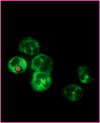Dit zijn antistoffen die gericht zijn tegen het cytoplasma van de neutrofiele granulocyt. Je kan dit terugzien door de granulocyten te kleuren. Die antistoffen zitten dus niet in de nier. Die antistoffen leiden in de neutrofiele granulocyt, tot een gedragsverandering van de neutrofiele granulocyt. De granulocyten duiken door de wand van de capillair en gaan daar de glomerulaire basaalmembraan kapot maken door een ontsteking te veroorzaken.