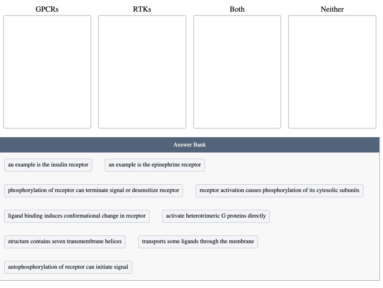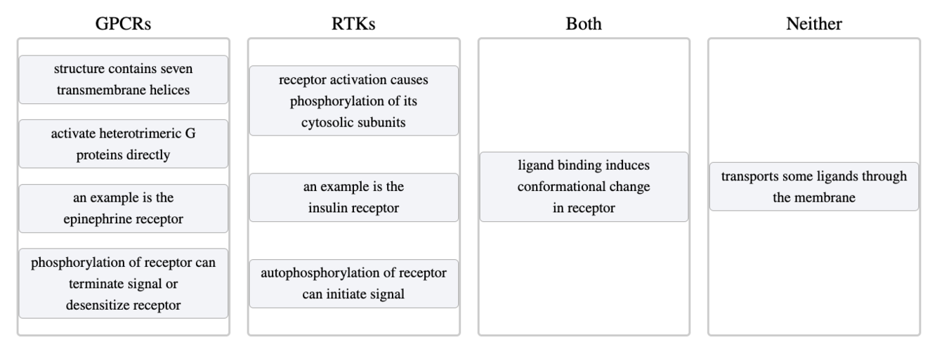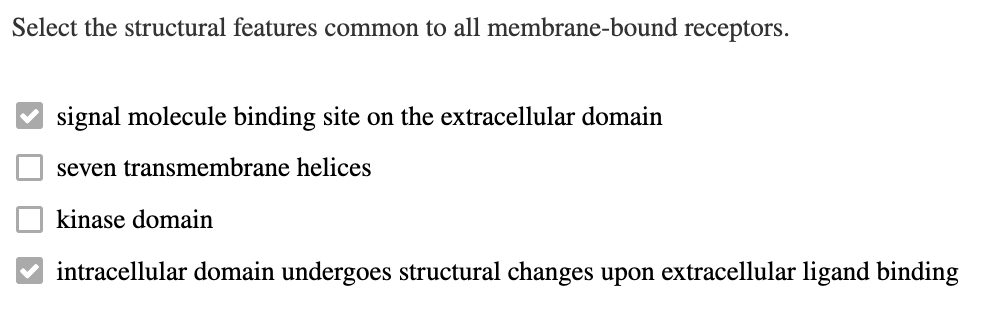 De receptor moet een plaats hebben aan de extracellulaire zijde van het membraan waaraan het signaalmolecuul kan binden en moet een intracellulair domein hebben. Binding van het signaal aan de receptor moet structurele veranderingen op het intracellulaire domein teweegbrengen, zodat het signaal kan worden doorgegeven.